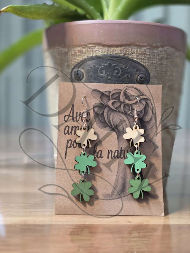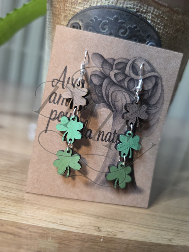 Les boucles d'oreilles composées de 3 shamrocks colorés à la main.